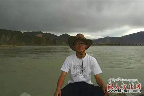 我在拉萨河边,穿着印有藏文字母表的衣服