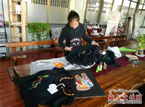 鸡蛋壳贴出来身着藏式服装的壁画、载歌载舞的刮画、惟妙惟肖的藏式摆件、绣着藏文字的衣服…….道智草的每一个作品里都少不了浓浓的藏族文化元素。