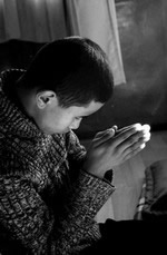 萨布瑞亚从一个自己能做很多事的盲人, | 茨仁罗布在进行午后的祈祷 |