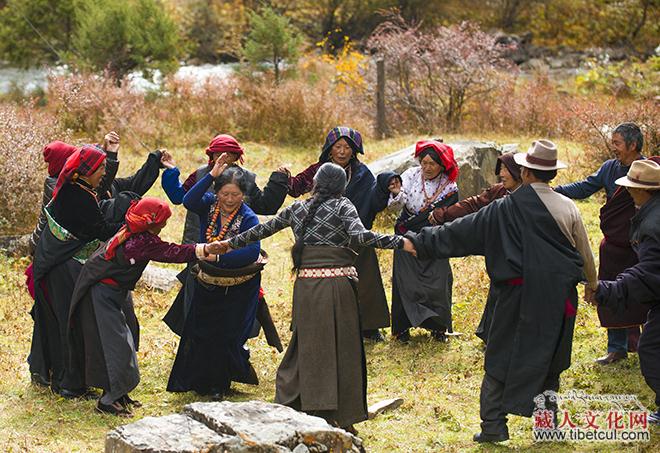 见人都到齐了,邓培老人走过去,人群自然围过来。他低声跟大家说了几句后,亮开苍老而浑厚的嗓音唱起了古老相传没有歌词的曲调,其他的人也跟着他唱起来。他们边走边唱,按照年龄大小围成一个圆圈。