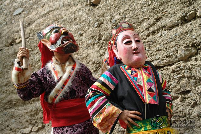 世界各国、各古老民族有一种普遍现象,在原始氏族社会阶段,大们崇拜图腾式寄魂物,信仰祖先,迷信鬼神,产生一种原始的自然崇拜,即巫教,由会占卜、懂巫术、知阴阳、善歌舞的巫师或咒师等主持,举行各种祭祀活动,形成了一种带有宗教神秘色彩的巫文化,也就是傩文化。涉藏地区远古原始的巫教,在巫教基础上发展出来的苯教,以及从外传播进来的已经藏族化的佛教等,这三者的祭祀礼仪和艺术形式,或相互有所吸收交流而发展,或多元并保留了各自的文化色彩与特征,至今主要于寺院“羌姆”的跳神活动中,即所谓的“寺院傩”中体现。